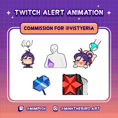 Alert animation for Twitch. Alerts are more detailed and have more flexibility compared to emotes.